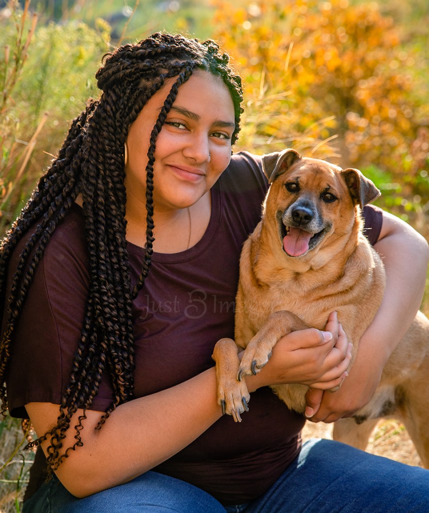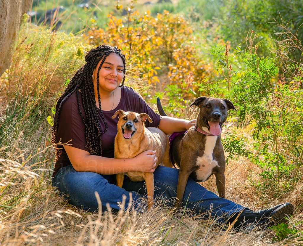 We got there before the sun started peaking over the cliffs to the East. That was a great time to visit and review her outfits. I also got to meet two of her sweet pups that would join her in some photos.